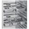 La cuve intérieure est en acier inox avec glissières embouties et intègre une évacuation d'eau pour un nettoyage facile et rapide. Elle est équipée de 4 grilles GN 2/1 plastifiées réglables en hauteur tous les 55mm, pouvant supporter jusqu'à 60kgs maximum et extractibles à 90°. La conception de la cuve permet un chargement record : jusqu'à 26 bacs GN 2/1, sur une hauteur de 155cm.