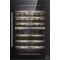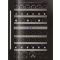 Cette cave est équipée d'une porte vitrée réversible traitée anti-UV, d'un cadre de porte noir à la finition très soignée, de clayettes bois à fronton inox, ainsi qu'un éclairage intérieur à LED.