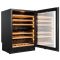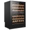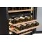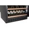 Ce modèle est équipé d'une porte à triple vitrage gris en verre trempé traité anti-UV, avec un encadrement de porte noir en verre organique. Un éclairage intérieur à LED blanc vient renforcer la visibilité des bouteilles et le design de la cave. La zone supérieure peut accueillir jusqu'à 24 bouteilles et la zone inférieure 22 bouteilles (type Bordeaux 75cl).