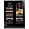 Ce modèle est équipé d'une porte à triple vitrage gris en verre trempé traité anti-UV, avec un encadrement de porte noir. Un éclairage intérieur à LED blanc vient renforcer la visibilité des bouteilles et le design de la cave.