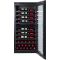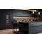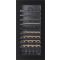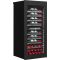 Cette cave est équipée d'une porte vitrée réversible avec fermeture douce, d'un cadre de porte noir à la finition très soignée, de 8 clayettes en bois à fronton inox noir, ainsi qu'un éclairage intérieur LED personnalisable (bleu, orange, blanc) et d’un écran TFT couleur avec contrôle sensitif.