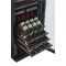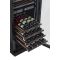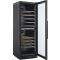 Cette cave est équipée d'une porte vitrée réversible avec fermeture douce, d'un cadre de porte noir à la finition très soignée, de 7 clayettes coulissantes (95%) sur rails