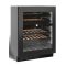 Cette cave est équipée d'une porte vitrée réversible, d'un cadre de porte dark inox à la finition très soignée, de clayettes bois à fronton inox, ainsi qu'un éclairage intérieur LED personnalisable (bleu, orange, blanc) et d’un écran TFT couleur avec contrôle sensitif.