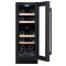 Ce modèle est équipé d'une porte réversible à double vitrage gris en verre trempé traité anti-UV, avec un encadrement de porte noir en verre organique. Un éclairage intérieur à LED blanc vient renforcer la visibilité des bouteilles et le design de la cave. La zone supérieure peut accueillir jusqu'à 7 bouteilles et la zone inférieure 11 bouteilles (type Bordeaux 75cl).