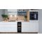 Cave à vin de service double-température, encastrable sous plan, avec une capacité de 18 bouteilles et réglable de 5 à 12°C en haut et de 12 à 20°C en bas.