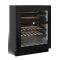 Cette cave est équipée d'une porte vitrée réversible, d'un cadre de porte noir à la finition très soignée, de clayettes bois à fronton inox noir, ainsi qu'un éclairage intérieur LED personnalisable (bleu, orange, blanc) et d’un écran TFT couleur avec contrôle sensitif.