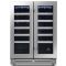 Cette cave est équipée de 2 portes vitrées traitées anti-UV, de cadres de porte en inox à la finition très soignée, de clayettes bois à fronton inox, ainsi qu'un éclairage intérieur à LED.