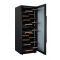 Cette cave est équipée d'une porte vitrée réversible, avec cadre noir et poignée métal.