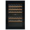 Ce modèle est équipé d'une porte à triple vitrage en verre trempé noir traité anti-UV, avec un encadrement de porte noir. Un éclairage intérieur à LED blanc vient renforcer la visibilité des bouteilles et le design de la cave.