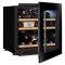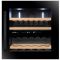 Ce modèle de petite capacité 64L (28 bouteilles "Bordelaise Tradition" : 19 dans la zone supérieure et 9 dans la zone inférieure) est équipé d'une porte vitrée réversible triple vitrage gris en verre trempé traitée anti-UV.