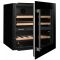 Ce modèle est équipé d'une porte vitrée double-vitrage transparent en verre trempé traité anti-UV. Sa porte réservible et sa poignée noires s'intégreront parfaitement dans votre cuisine. Le design de la cave est renforcé par un éclairage intérieur à LED blanc commandé par interrupteur. Deux clayettes de stockages en bois sont fournies avec la cave.