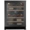 Cave à vin de service encastrable double-température, encastrable sous plan, avec une capacité de 47 bouteilles (22 bouteilles dans la zone supérieure et 25 bouteilles dans la zone inférieure) et réglable en haut de 5 à 12°C et en bas de 12° à 20°C (différence minimale de 4°C entre les 2 zones).