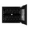 Cette cave est équipée d'une porte triple vitrage traitée anti-UV, d'un cadre de porte noir à la finition très soignée, de 2 clayettes bois à fronton inox, ainsi qu'un éclairage intérieur à LED.