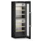 Porte : Cette version est équipée d'une porte vitrée réversible finition inox avec triple vitrage anti-UV (UV Protect Plus) à fermeture automatique, qui limite ainsi grandement l'impact de la lumière sur les bouteilles.