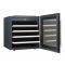Ce modèle est équipé d'une porte à double vitrage en verre trempé noir traité anti-UV, avec un encadrement de porte noir. Un éclairage intérieur à LED blanc vient renforcer la visibilité des bouteilles et le design de la cave.