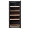 Cette version arbore un design original grâce à sa porte full glass anti-UV contour noir. Elle assure donc une protection optimale pour que vos bouteilles ne soient pas altérées par la lumière, tout en s'intégrant parfaitement au design de votre pièce. De plus, son éclairage intérieur à LED avec affichage blanc mettra vos meilleures bouteilles en valeur.