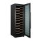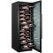 Cave à vin mono-température de service encastrable, réglable de 5 à 20°C, d'une capacité de 124 bouteilles (Bordelaises) présentées de manière très originale et esthétique.