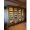 Lot de 4 armoires à vin sur mesure, 2 portes, structure acier, avec finition sapin thermochauffé brossé vernis mat, pour 145 bouteilles,