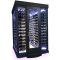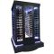 Chaque coté est équipé de 13 grandes clayettes plexiglas transparentes. Le Fond est équipé de 11 petites clayettes plexiglas transparentes. Capacité 478 bouteilles