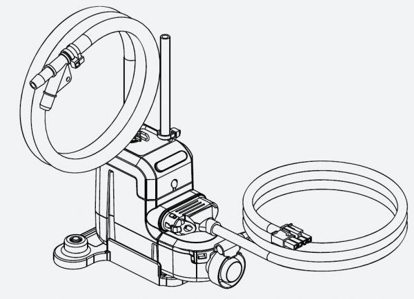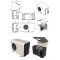 En option : Si l'évacuation des condensats par gravité n'est pas possible, une pompe de relevage peut-être intégrée à l'évaporateur et permet d'évacuer l'eau de condensation à travers un tuyau vers le réseau des eaux usées, un égout, etc..