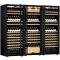 Combiné de deux caves à vin mono-température de vieillissement ou de service et d'une cave à vin multi-usages 3 températures. Cette version est équipée de 3 portes double vitrage argon traité anti-UV Full Glass.
