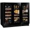 Ce combiné est équipé d'une double porte vitrée et d'une porte vitrée réversible, toutes traitées anti-UV, de cadres de portes en verre noir à la finition très soignée, de 7 clayettes en bois semi-coulissantes et 5 demi-clayettes semi-coulissantes, ainsi qu'un éclairage intérieur à LED blanc.