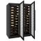 Ce combiné enchassable de 2 caves à vin mono-température de service, chacune réglable de 5 à 22°C, est équipé de portes vitrées traitées anti-UV, avec un encadrement noir full glass et un éclairage intérieur à LED vertical sur toute la hauteur.
