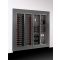 Exposition des bouteilles : Présentation horizontale : dans cette version, la vitrine peut accueillir jusqu’à 120 bouteilles, couchées sur des tubes en aluminium, dans le sens de la largeur, ce qui laisse apparaître l’étiquette de la bouteille placée à l’avant. Au total, 60 bouteilles sont placées à l’avant, étiquette visible, et 60 sont à l’arrière, non visibles. Le diamètre maximum des bouteilles est de 93mm, ce qui permet d’accueillir la plupart des formats 75cl (Bordeaux, Bourgogne, Champagne).