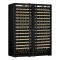 Combiné enchassable de 2 caves à vin Mono-Température de vieillissement ou de service de grande capacité réglable de 6° à 18°C. Cette version est équipée de 2 portes double vitrage argon traité anti-UV Full Glass.