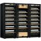 Combiné enchassable de trois caves à vin mono-température de vieillissement ou de service et d'une cave à vin multi-usages 3 températures. Cette version est équipée de 3 portes double vitrage argon traité anti-UV Full Glass.