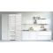 Le réfrigérateur dispose de 4 clayettes en verre amovibles, 1 clayette pour le bac à légumes, 1 bac à légumes supplémentaire, 3 balconnets et un support à œufs.