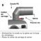 Le kit comprend : 2 conduits droits avec manchon Ø 125 mm - longueur 2000 mm, 2 colliers support Ø 125 mm, 2 colliers de serrage monofil Ø 150 mm, 2 coudes 90° avec manchon Ø 125 mm, 2 traversées de mur télescopiques avec volet de fermeture à ventelles.