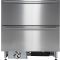 Réfrigérateur à tiroirs intégrable sous plan de travail, à facades inox (facades livrées mais non installées) , ayant un volume intérieur utile de 104L et une température réglable de 2° à 8°C. Il est équipé d'un dégivrage automatique et ne nécessite donc aucun entretien.