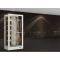 Éclairage : pour mettre en valeur vos bouteilles, un éclairage LED vertical est présent sur toute la hauteur de la vitrine. L'éclairage standard est un blanc naturel (4000°K) et il est commandé par un interrupteur en façade. Il est possible de sélectionner en option un éclairage variable en intensité et en coloris (soit multicolore RGB, soit différentes teintes de blanc). Dans ce cas, l'éclairage est contrôlé par une télécommande, ou par application mobile (si l'option Contrôle à distance par application mobile a été choisie).