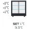 Installation : cette vitrine est destinée à être installée en position d’îlot ou de séparation pour profiter des 4 côtés vitrés et du double accès avant/arrière. Grâce à la position du groupe froid dans le plancher de l’appareil, aucun espace libre n’est nécessaire à l’arrière, au-dessus ou sur les côtés, rendant également possible une installation dans une niche. Elle peut également être posée sur un socle pour être surélevée à condition que celui-ci supporte le poids de la vitrine chargée.